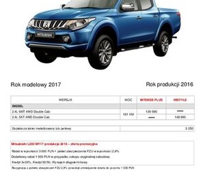 L200 - model 2016 i 2017, rok produkcji 2016 – oferta dla klientów indywidualnych